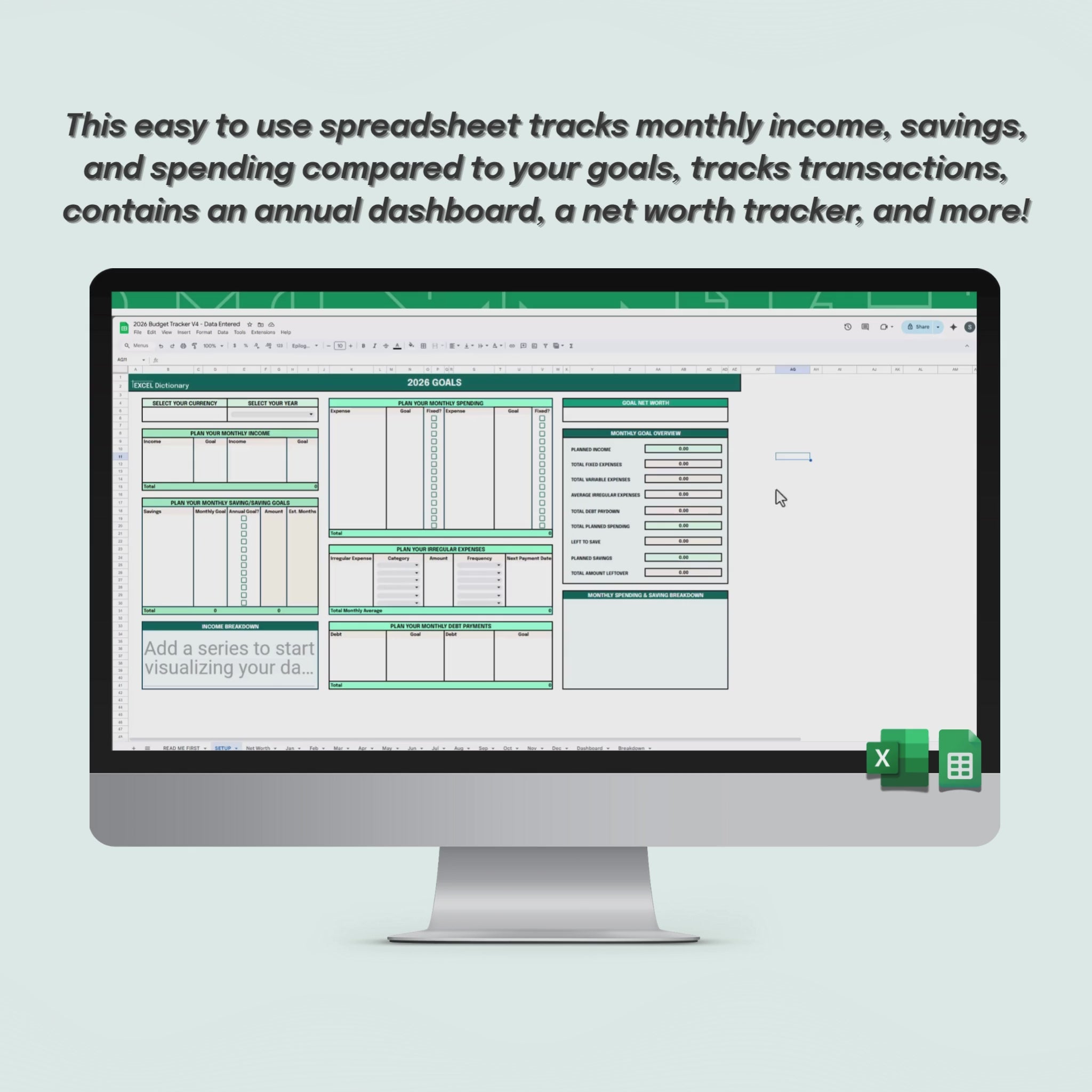 Take charge of your money with our most advanced budget tracker yet. The NEW Net Worth tab (your #1 request!) tracks all assets and liabilities, while the irregular expense calculator handles those tricky annual and quarterly bills automatically.