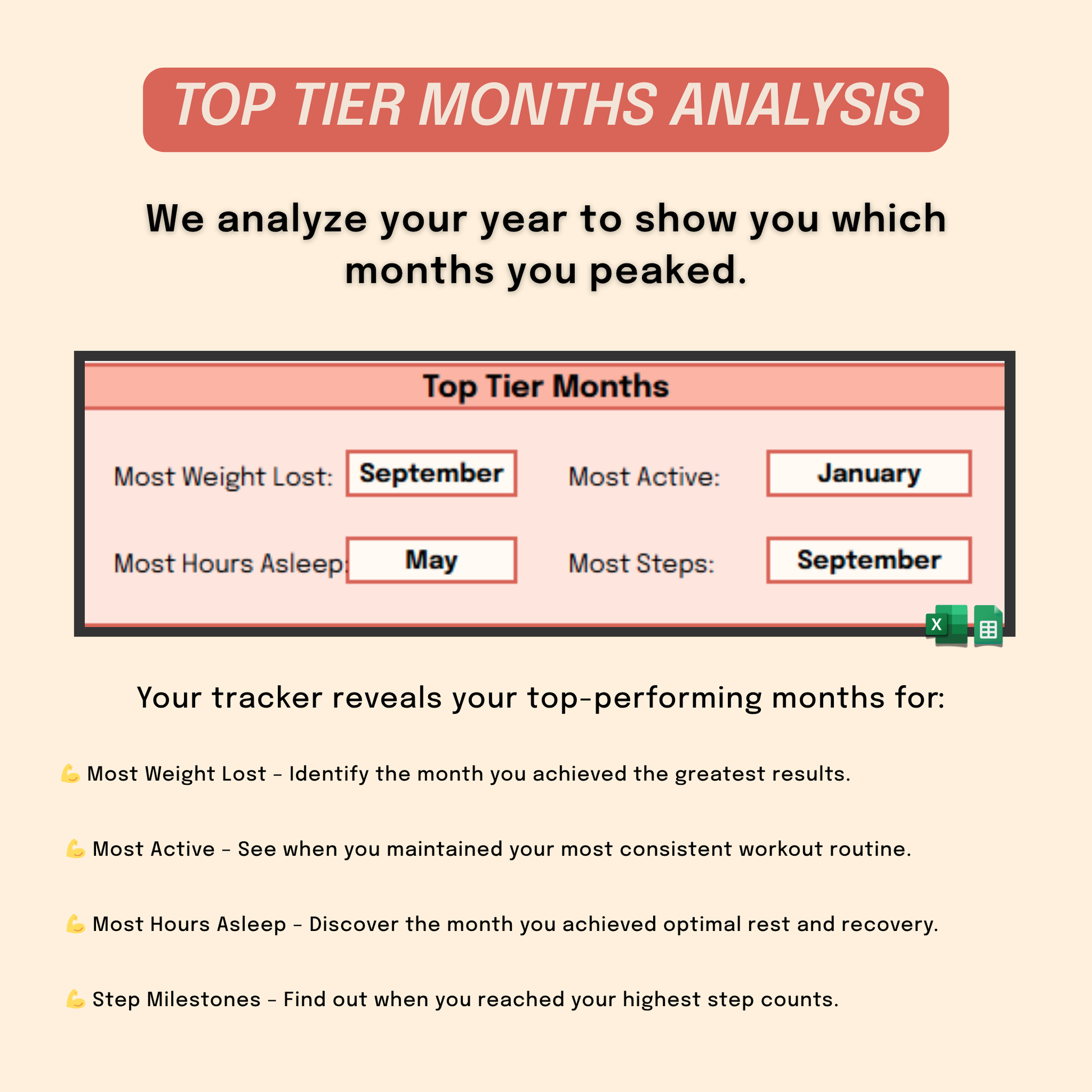 • Achievement Tracking - Top tier months for weight loss, sleep, activity, steps
